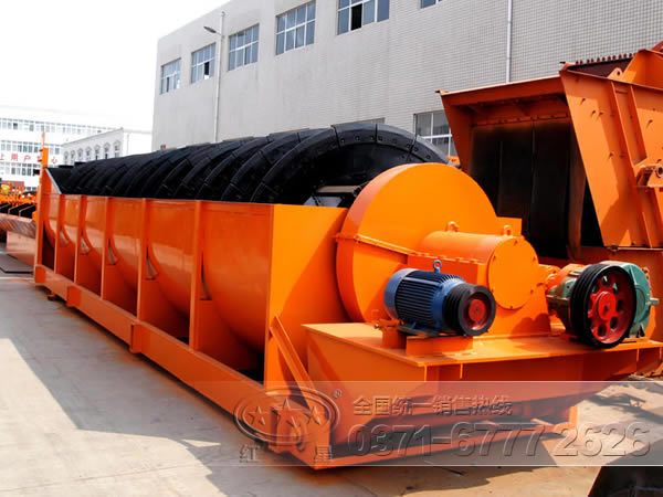该设备与螺旋分级机结构相似,所不同的是叶片为不连续的桨叶形。对物料有切割、擦洗作用,对小泥团的碎散作用较强,适合处理中等粒度含泥较多的难洗矿石。设备处理量大,洗矿效率高,适于thgj75mm以下的物料。要求冲洗水压为147~196kpa。