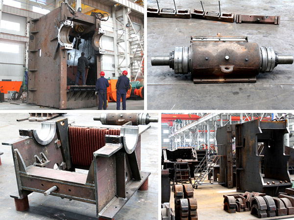 鄂式破碎机的机架在工作中受很大的冲载荷,因此,它应具有足够的强度和钢度。目前,破碎机的机架有整体机架,和组合机架。组合机架虽然 了大型破碎机制造和运输上的困难,但在机架加工,装配和拆卸方面却增了加了不少麻烦。其次,组合机架的钢性较差。
